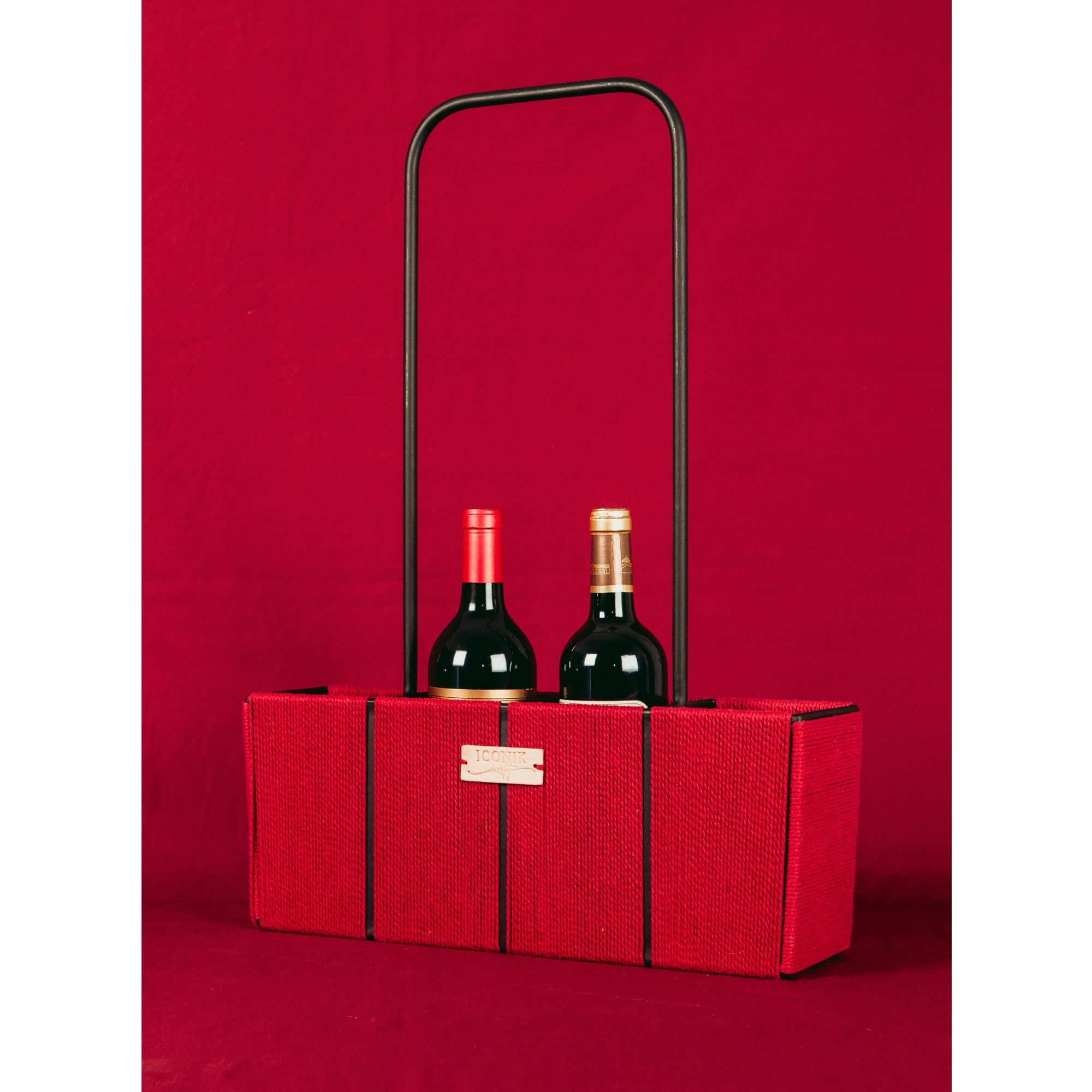 Le panier Iconik Merlot dans sa version rectangulaire est un panier apéritif design et artisanal pensé pour vos dégustations de vin.