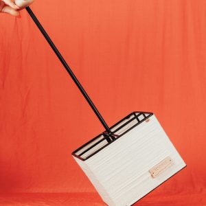 Il est 100 % fabriqué à la main par nos artisans : de sa structure en fer brossé noir à son tressage en fil de coton blanc et sa poignée en noyer. Ce qui fait de chaque panier une pièce unique.