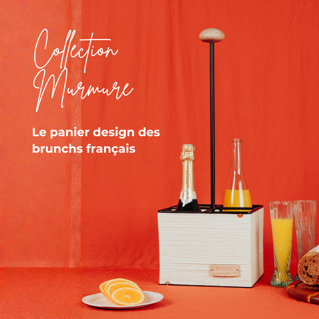 Le panier Iconik Murmure est un panier apéritif design et artisanal pensé pour accueillir bouteilles, verres et accessoires.